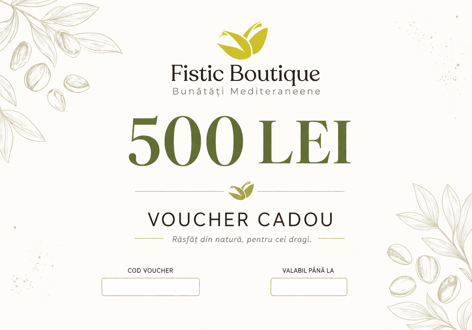 Avem vouchere „standard” de 300, 400 sau 500 de lei, iar dacă ai nevoie de un voucher cu o altă valoare, dă-ne un mail (click aici) și rezolvăm. De asemenea, voucherele pot fi și personalizate, în funcție de ocazie. Tot pe mail discutăm și asta.